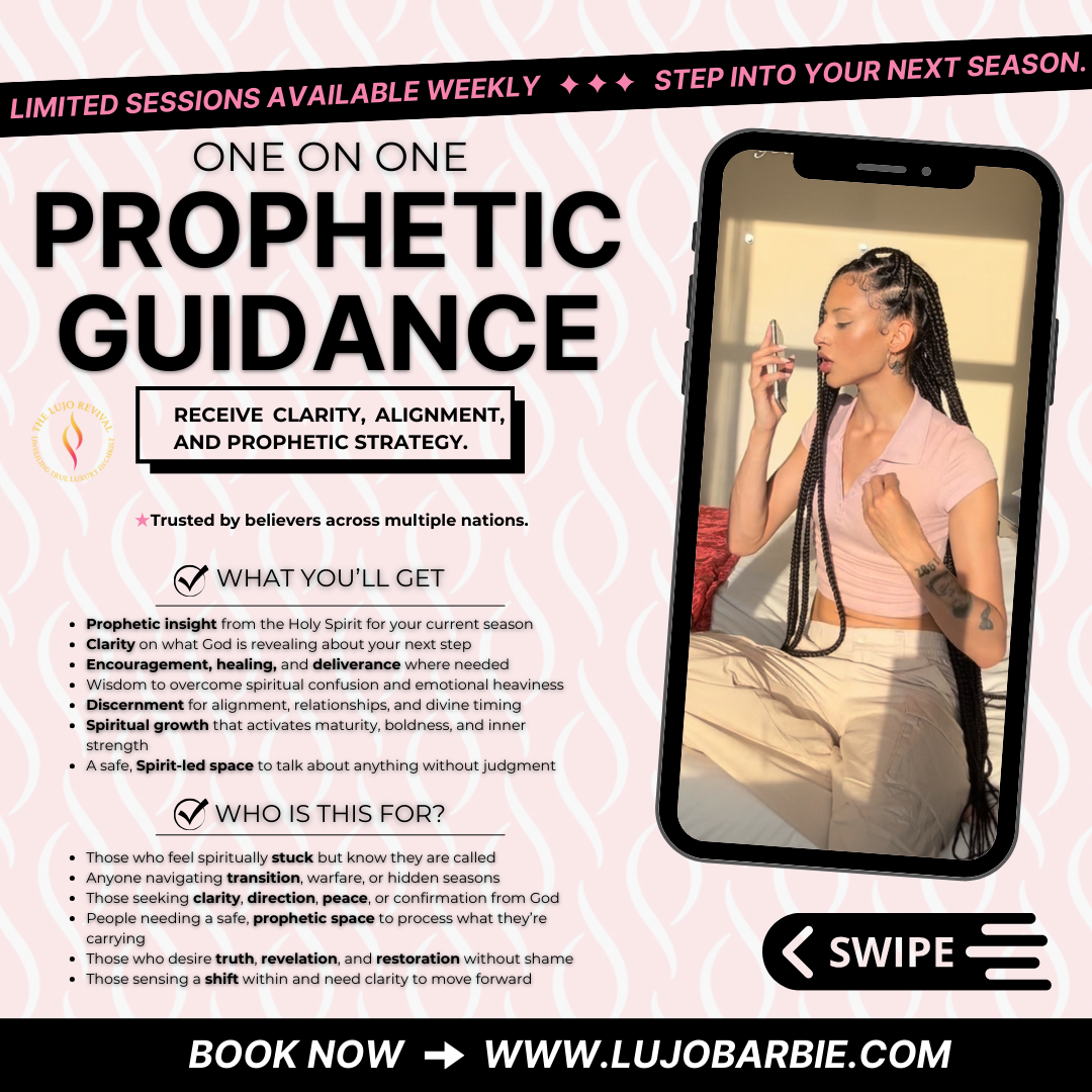 A prophetic, healing, and deliverance session designed to bring clarity, breakthrough, and divine alignment. Each encounter is fully Holy Spirit–led and tailored to what you’re walking through in this season. This is a safe, intentional space for clarity, strategy, healing, and spiritual realignment.